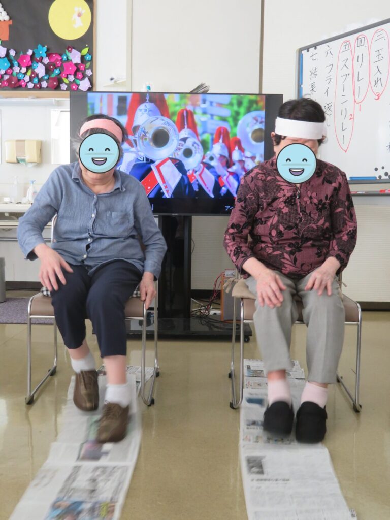 選手宣誓して、1ラジオ体操 2新聞リレー 3風船リレー 4ボール運び 5玉入れ