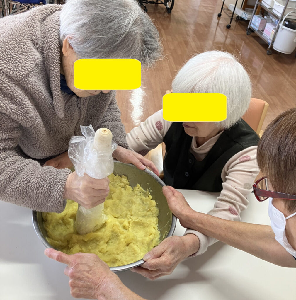 ふかしたサツマイモを潰して茶巾絞りにして完成です。