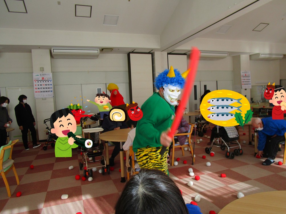 恵光園では節分の時期になると、恐ろしい(??)鬼がやってくるのですが…今年も鬼退治⚔️をするべく!みんなで豆まき🫘を行いました!!!